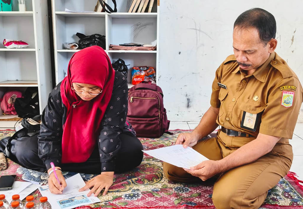 Supervisi: Pengawas SD Kecamatan Sumberpucung (kanan) meneliti kelengkapan dokumen pelaksanaan TKA SDII Pesantren Rakyat
